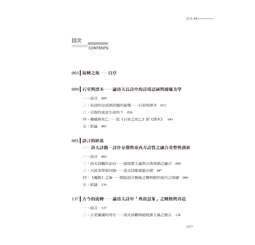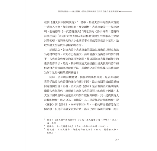 論集中的幾篇文章有的在研討會上發表過後經過修改,並刊登在期刊上,也有的收錄於個人專書,此次重新閱讀與修改,讓這些論文找到自己的定位,各自安放在這一本專書之中,這是我在研究路上一個小小的成果。避開包括費勇、龍彼德、沈奇等大陸學者與台灣許多研究者的研究觀點,或是在他們的研究方向上深化個人對於洛夫詩歌的解讀,在這過程中有許多艱辛,也有幾分竊喜,還有幾分的小小成就感,是過去努力與辛勞的一個小逗點,終究這只是半山腰上的一座暫歇的涼亭。