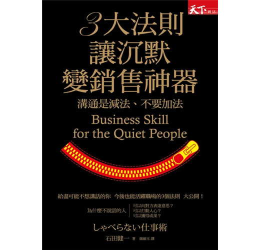 作者本身是內向、對與人溝通也不太拿手的人,但卻利用「沉默」這看似缺點的性格,經過自己獨特解讀之後轉化成利器,讓他在工作上屢戰不敗,榮獲各項知名的廣告獎。他所介紹的三大法則─「簡化的法則、反差的法則、觀察的法則」以及「建立不受挫的心的八種習慣」,可讓不擅說話的人能把弱點轉化成優勢,進而增進人際關係、達到工作目標!本書可說是不擅說話的人的溝通聖經!