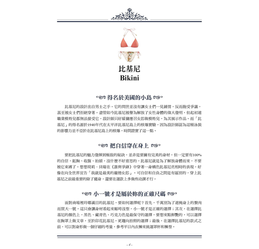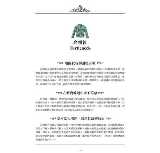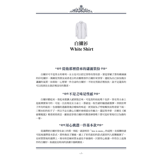 時尚永遠在變,而經典永遠不變。在時尚史上掀起過風潮、引領過潮流、歷經歲月的磨礪卻經久不衰的時尚單品,每一件都留下過濃墨重彩的一筆。本書帶妳了解這些時尚單品的前世今生和絕妙設計,讓妳對每一件時尚單品皆了熟於心,成為當之無愧的時尚達人。