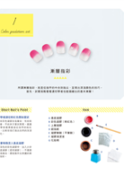 這本指甲彩繪工具書,不僅將所需的材料清楚列舉出,就連步驟也講解得十分詳細。只要照著作者的說明做,讓妳可以省錢又可以獲得成就感唷!