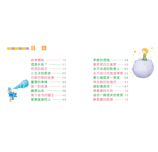3.安東尼‧聖修伯里以童話式的筆觸,描寫小王子與飛行叔叔天真爛漫卻富含深意的對話,讓人們找回孩提時候的純真夢想,也能讓孩子用心體會真正的愛與友誼。