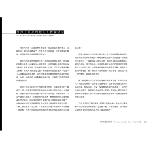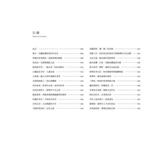 本書的精采照片能帶領你進入一趟充滿冒險的旅程,一窺自然最美的樣貌。有些照片是在彼得‧埃西克最喜歡的地方拍的,像是位於南美洲末端,智利巴塔哥尼亞地區南部的百內國家公園。這些照片會讓你看到人類社會的冷酷、醜陋面,以發展進步之名行剝奪生物多樣性之實,像是加拿大油砂的問題,和美國數十年前在越南不負責任地使用落葉劑延續至今地殘害。