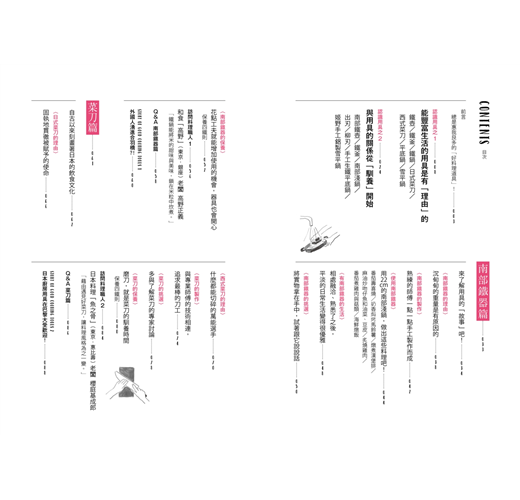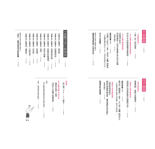 南部鐵器、菜刀、平底鍋、雪平鍋與好用小道具……本書介紹的料理道具不涉及個人美學取向,評選標準以實用為依歸,切切實實地符合講究效率與實用的廚房精神,卻也因此自然而然地呈現了生活美學與質感,是一本所有料理職人、料理愛好者都將無比受用,以往卻遍尋不著的廚房用具精選指南。