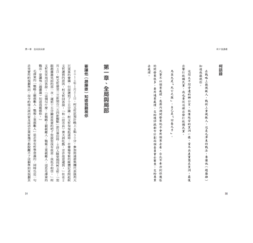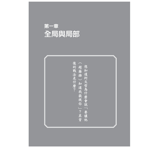 本書在每章的結尾都有一個思考問題,如果讀者能將此問題好好想明白,我相信讀者對於該章所講的兵法必能更加領略,甚至更能將其應用在自己人生的修養及事業上。另外,本書在每章的開始都節錄了此章節裡提到的一些柯語錄,堪稱為柯文哲思想的重點,希望讀者能夠將其銘記在心裡,想必對讀者日後的生活、感情、事業都會有相當大的幫助。