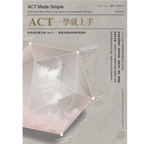 ACT的創始人Steven Hayes在2012年的《接受與承諾治療──正念改變歷程及實作》一書中,將「價值觀」比喻為在深山中廟宇的殿堂,「糾結」與「經驗逃避」比喻為殿堂前的兩隻石獅子,要到達廟宇的殿堂必須「付諸(承諾)行動」,走過千層階梯,且經過兩隻石獅子的檢驗,也就是能夠「脫離糾結」及「接受」苦難,才能到達廟宇的殿堂。價值觀的付諸行動可能帶來的附加價值是快樂。我很喜歡這本書,覺得書中的理論及實作寫得像詩歌一樣美妙,但是我的研究生們都覺得這本書太深奧,不適合做為ACT的入門書(顯然他們在唸這本書時吃了不少苦)。ACT協會(Association for Contextual Behavioral Science; ACBS)推薦了十本ACT專業級圖書,且建議至少要唸其中三至四本書,才能充分掌握ACT的精神。《ACT一學就上手》(ACT Made Simple)是其中一本,且是我覺得最好的ACT入門書,在張老師文化公司的促成下,快速地譯完本書(接著我也會陸續譯出該協會推薦的ACT書籍)。