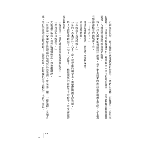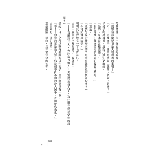 「不……你犯的正是殺人罪。你是個不折不扣的殺人凶手,吉田勝也先生。」