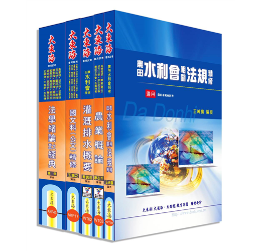 由大東海專業公職國考名師團隊,推出適用於農田水利「灌溉管理組」考試全科目專用套書,一套五冊,內含歷屆試題以及必考重點精華,將灌溉管理相關的所有必學知識完整收錄,並加以給予專有名詞之詳解,讓您於考場輕鬆靈活運用、無往不利,成功晉身為水利會的一員!