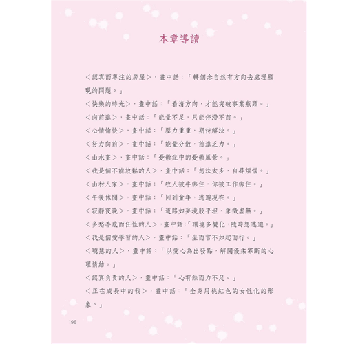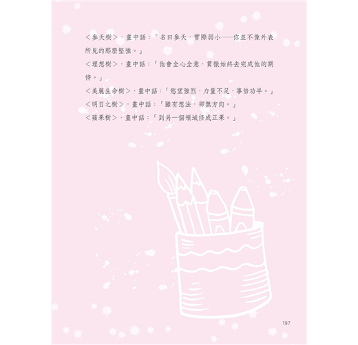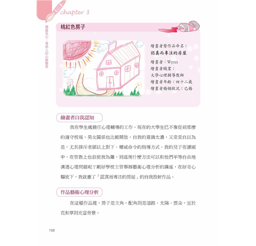 本書所收錄的案例,皆是以一般大眾為對象,並不涉及有關的精神疾病,但所提供的各種不同主題的繪畫方式,可以幫助心理諮詢師、教師、家長、社會人士及學生們增進臨床心理的專業知識。
