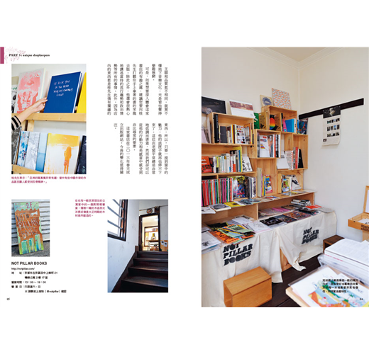 在只有三坪左右的空間當中擺滿了用葡萄酒箱製作而成的書架,陳列著以ZINE 為主的海外independent book、國內的少量作品、個人出版的作品集等。