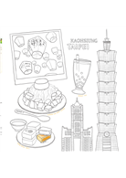 ★在全世界的特產與名勝古蹟,塗上自己最喜歡的顏色。
