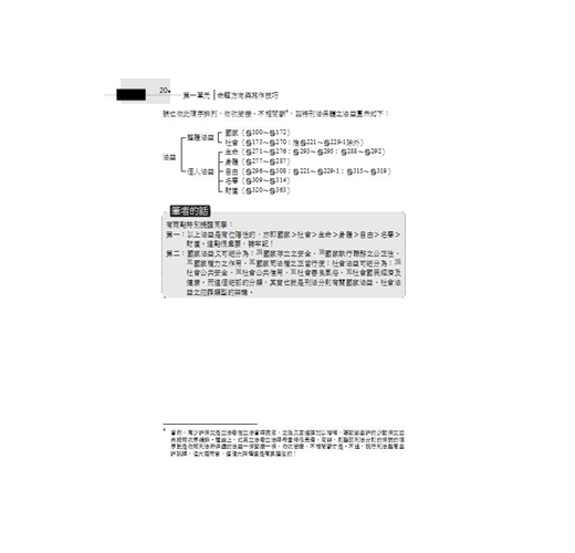 話說回來,或許這也是最後一次那麼完整的版次了,筆者原本是期許這本書像字典般,有任何刑法總則的考點不會解、如何洞悉考點、命題者包裝考點的態樣,幾乎都能在其中找到相關題目、解析及詳答。無奈基於成本考量及現在考生的喜好傾向(喜歡看薄薄的書較無負擔且有成就感),筆者接到出版社告知的市場詢問反應,似乎多數希望將本書瘦身,所以下個版次起,可能就會刪個300頁左右吧。無論如何,這次就還是維持完整版的呈現,也希望本書可以讓各位在學習及考試上有所裨益,甚至引發對刑法的興趣,並早日通過國考的試煉。