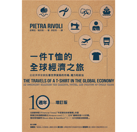 「皮翠拉‧瑞沃莉完成了簡直不可能的任務。《一件T恤的全球經濟之旅》充滿色彩和生命力、幽默和戲劇性,同時也以理論、事實和政治經濟的微妙洞見為依據。」──查爾斯‧皮爾森(Charles S. Pearson)∕約翰‧霍普金斯大學國際經濟學系主任