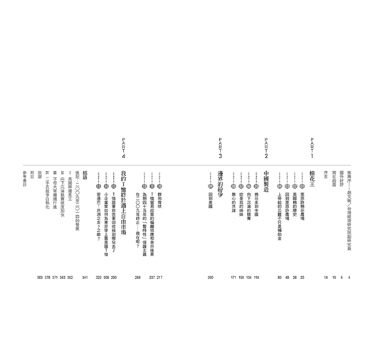 我動筆寫這本書時,完全沒料到T恤的故事竟會和當代幾件最重要的經濟大事扯上關係:掌握紡織品貿易四十年之久的政權──從甘迺迪(John F. Kennedy)總統的選舉政見起算──在本書完成之際終於斷氣,留給一個屬於失敗者的美麗新世界、少數大贏家,和一個不確定的未來。約莫同時,全球最貧窮的國家聯手發動一個大衛對抗巨人式的驚人行動,以全球貿易會議為人質,要脅美國提供農業補助,特別是對棉花,我T恤主要(或者該說唯一)原料的補助。九一一事件後沒幾天,在政府雷達螢幕下,T恤銷售和軍事援助這兩個不相干的議題,竟在布希(Bush)政府和巴基斯坦(Pakistan)一場詭異的協商中被綁在一起,顯示美國紡織業仍握有出人意表的權力。而中國,我T恤一生待得最久的地方,也躍上中央舞台,成為世界第二大經濟實體。在我寫這本書的時候,中國這個奇特的資本主義警察國家(police state)像氣球一樣迅速膨脹,用低成本的進口商品淹沒美國,迫使美國每家公司不分大小都得擬定「中國策略」,對付「中國價格」或處理「中國威脅」,同時民主黨員和共和黨員無不努力解釋他們在「中國議題」方面的立場。