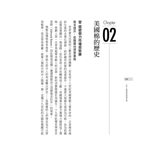 技術方面的創新提高了生產力,生產力的提高降低了價格,低廉的價格刺激了對紡織品的需求,讓英國開始渴望原料棉。英國大眾一對「華服」產生興趣,這種喜好就勢不可擋。當時一般平民穿得起的棉製衣服,價值相當於今天美金五塊九毛九的T恤。接下來,就跟現在一樣,消費需求主導了世界貿易潮流的起落。