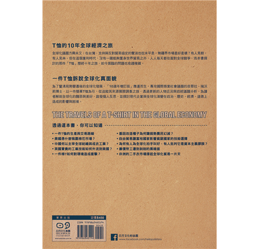 一件T恤訴說全球化真面貌你一定聽過「全球化」這個名詞,但是否真正了解其背後的意涵?其實,全球化早已滲透你我生活的食衣住行。例如你穿的衣物可能在越南、印度或中國製造,喝的茶可能來自泰國、印尼,吃的肉類可能是從美國、澳洲、紐西蘭進口。但僅只透過媒體片面傳播,並不足以徹底了解全球化的實際運作與隱藏背後的故事。本書從一件看似單薄的T恤開始,揭開令人大開眼界的全球化貿易生產與供給鏈之祕:棉花如何成為織品?如何從一塊布裁剪為成衣?又是如何透過貿易手段,從工廠、中間商進入市場,最後來到你的手上?