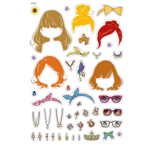 本書包含十六款時尚的花紋圖紙,以及輔助衣服裁剪的打樣版,另外還有各式各樣的項鏈、手環、戒指等等的配件,以及各種背景裝飾和可愛小物貼紙。