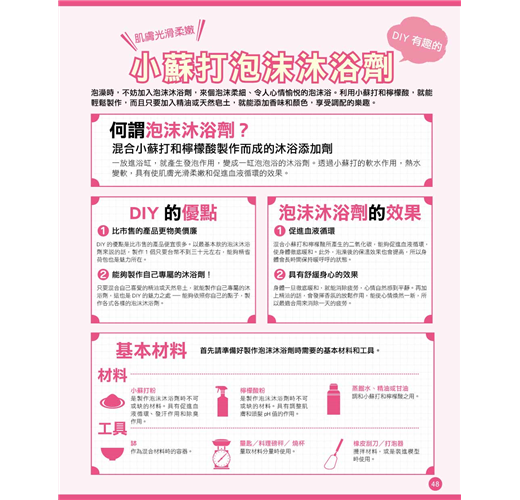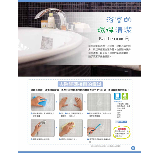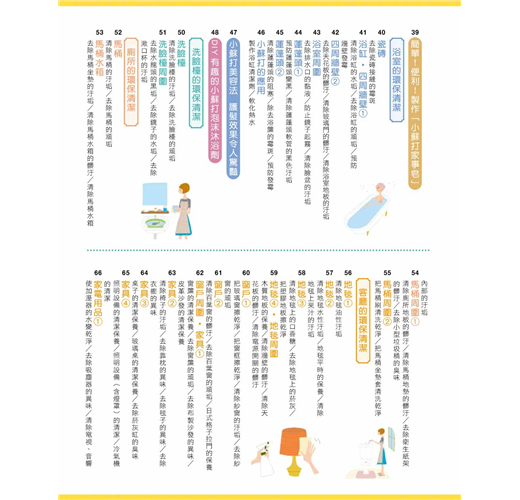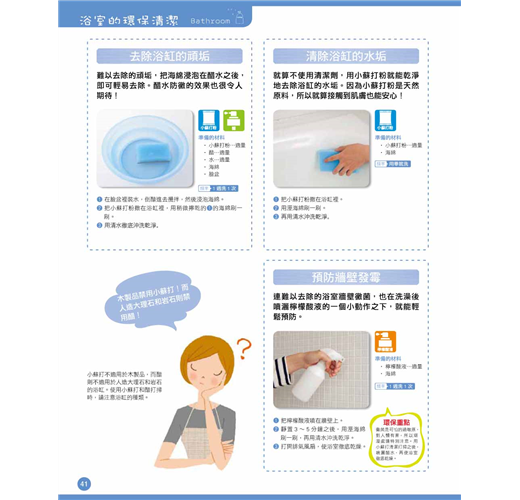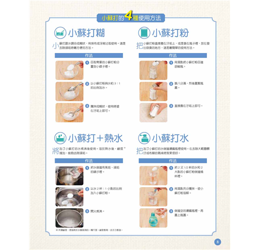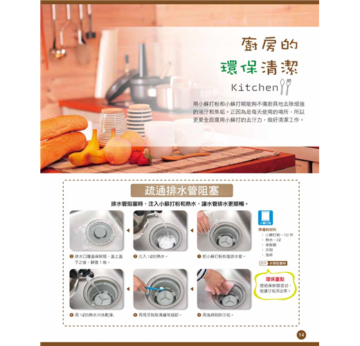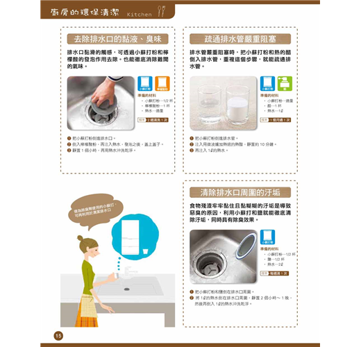 小蘇打能廣泛地使用於廚房清潔、浴室清潔或洗滌等居家清潔上。能夠大幅刪減以往購買的各種清潔劑。