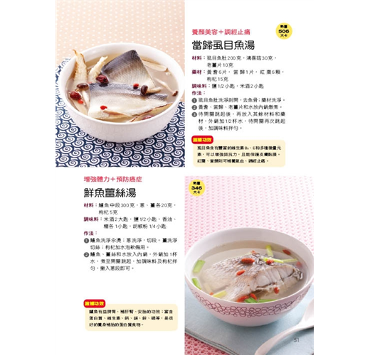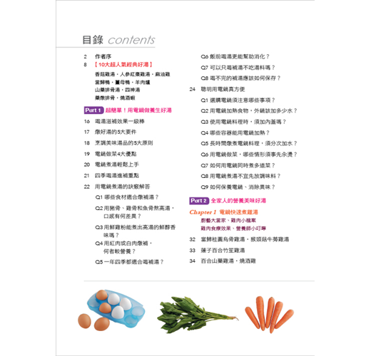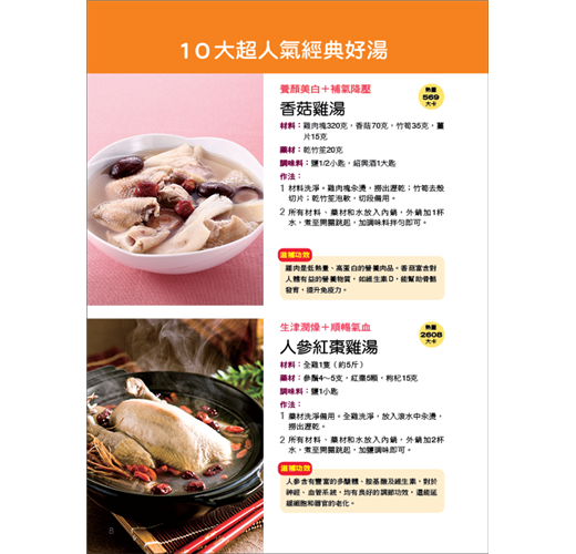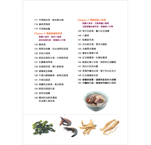 細說養生湯食療功效、烹調祕訣,營養師推薦超級健康明星食材,中醫師的燉補常用藥材小百科,喝好湯也能長知識。