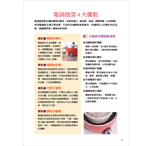 電鍋是居家必備的廚房好幫手,功能多樣化,能加熱、保溫、蒸燉菜餚,以及煮湯。使用電鍋既方便又無油煙,不但符合健康飲食新概念,也讓現代人在繁忙的生活裡,能輕鬆烹煮一頓美味的餐食。