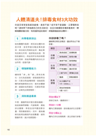 □□除蔬果外,五穀雜糧富含膳食纖維及不飽和脂肪酸,排毒效果也不容小覷,前者能改善腸道菌叢生態,促進排便;後者能降低體內壞膽固醇,達到淨化血液、預防動脈硬化等功效,是對三高患者有益的食材,本書對此部分亦有詳盡介紹,可提供讀者作為參考。