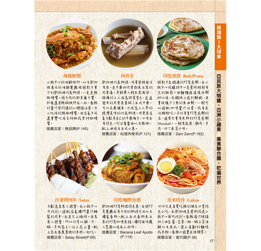 娘惹文化的叻沙、印度烤餅、國民美食海南雞飯與肉骨茶、辣椒螃蟹、