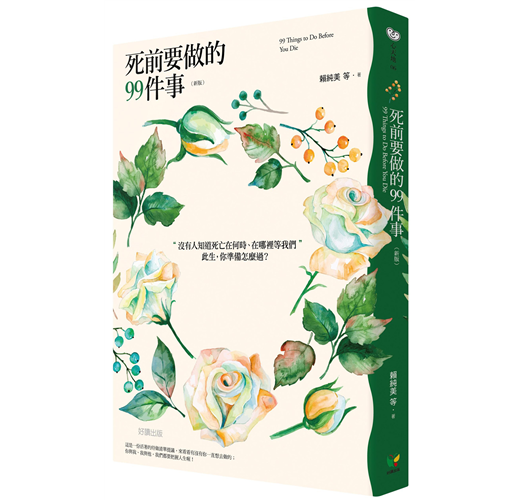 因為《死亡大事》讀書摘錄而牽連的緣分,我接到好讀出版社編輯來電邀約,要在一週內完成《死前要做的99件事》(新版)推薦序。我一向服膺老師說的話:「有求必應」,是要對方「有求」,然後我們盡量「必應」。我有很多事情想做,暫時還不能死,《死前要做的99件事》對我是很好的提醒和參考,雖然這輩子不可能完成那麼多事。