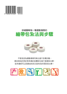 繃帶邊緣加框,包紮位置清楚明瞭;箭頭標示纏繞方向,運用粗細標示施力大小,簡簡單單就能學會一輩子受用的繃帶包紮技巧。