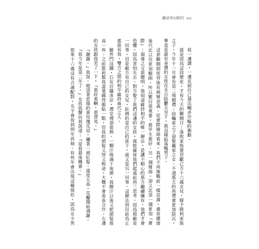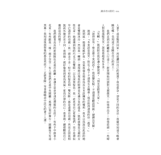 不過,婚禮一結束,事情就亂了套。她沒機會接近領導夫婦,只跟畢夏單獨住,而且她眼前的男孩根本不像父親和姊姊說的那樣暴虐、冷酷。向來衝動又軟弱的艾薇,咬牙逼自己一步步執行計畫,但是畢夏的體諒坦率攪亂她的心。隨著兩人距離一天天拉近,艾薇的掙扎一天天加劇:效忠家人,還是回應畢夏的情感?