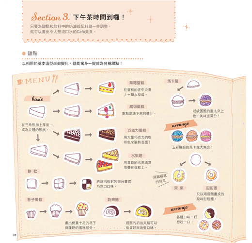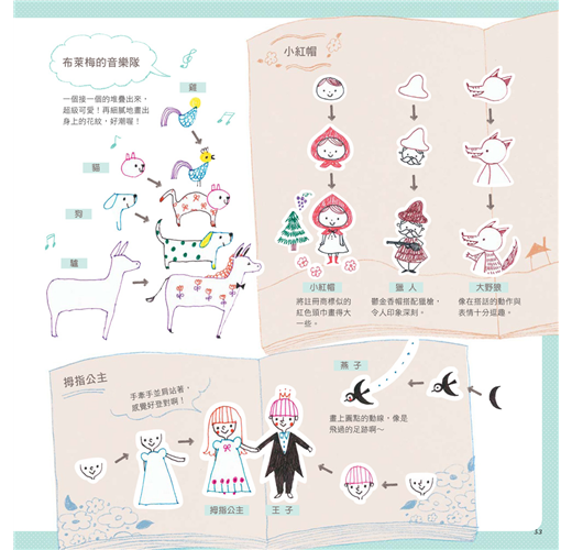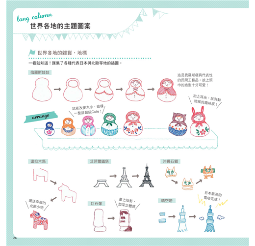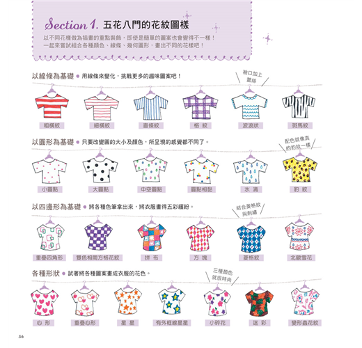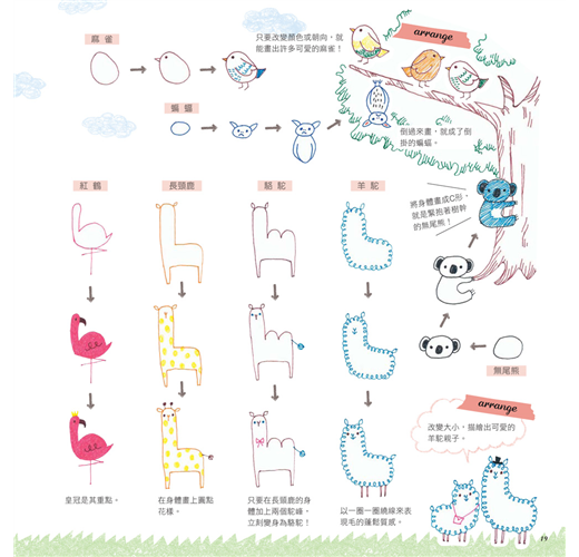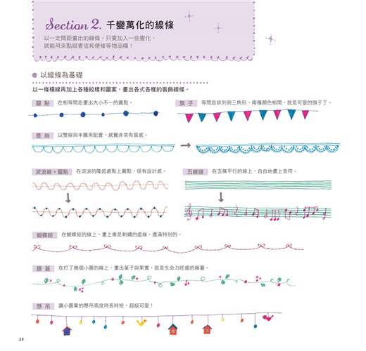 ★ 不只是描形狀,還有創意的IDEA!舉一反三,運用同一種線條創造不同圖案。