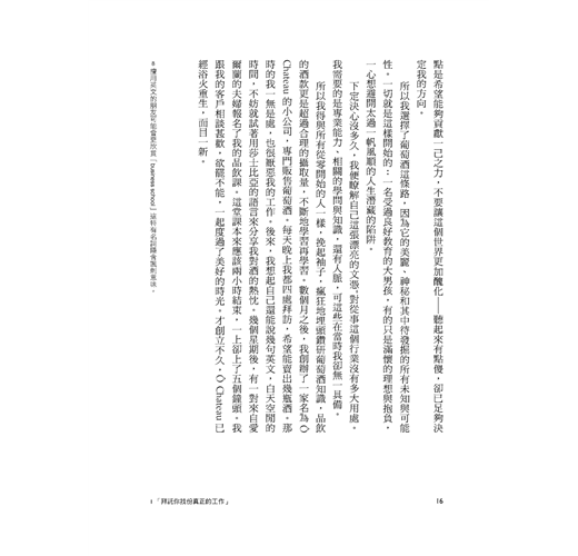 我希望透過這本書,成為各位讀者在學酒路途上的嚮導,讓你也能品味這旅程豐美鮮醇的滋味。