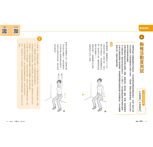 每一項脊椎檢測與運動皆可運用智慧型手機掃瞄書上的QR Code,立即連結影片觀看示範演練的各種動作,突破平面書籍的限制,延伸成為動態的「影片書」,知識量大於一般書籍。