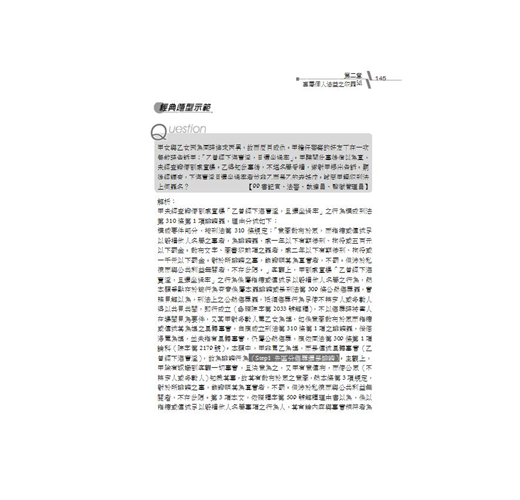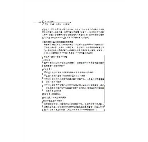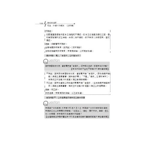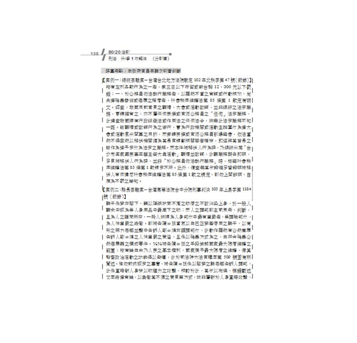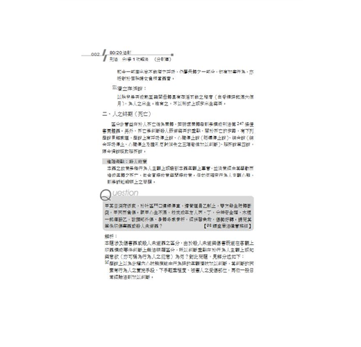 二、學說見解重點直擊:本書顛覆一般參考書作法─將學說全盤整理,反而以有系統的將可能出現之學說考點,以重點式寫作呈現在各位讀者眼前。