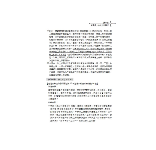 一、實務見解全面蒐集:本書搜尋幾千則實務見解(上從最高法院決議、判例、判決至高等法院座談會、判決,甚至精選各地方法院之重要判決,此外還附帶搜索司法院與法務部見解),整理關於各條文可能涉及的相關實務見解,以供各位讀者對我國實務見解有一定之認識。