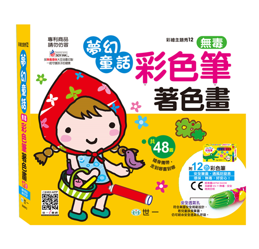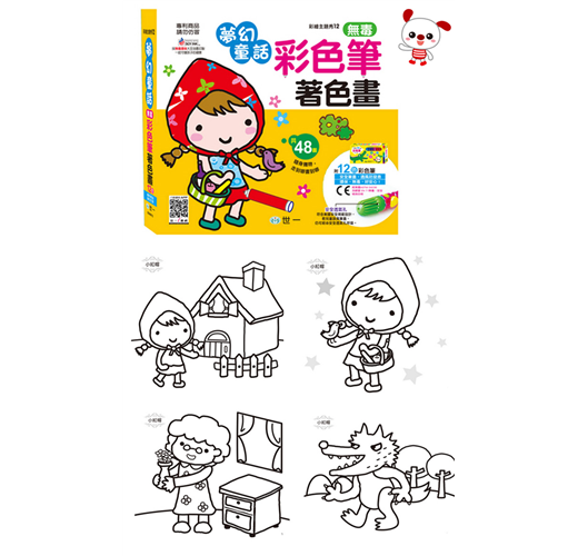 48頁童話世界著色畫,搭配12色彩色筆,超值組合!