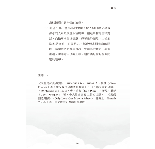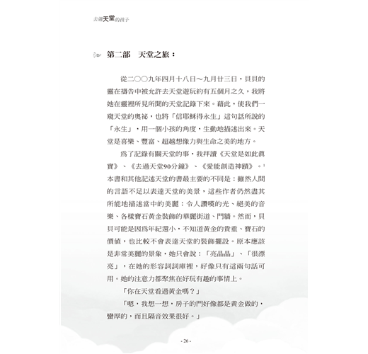 我覺得上帝才是這本書的真正作者,自己只是個記錄者,因為除了上帝自己的創造,沒有人能編想這超越豐富生動所能形容的天堂。