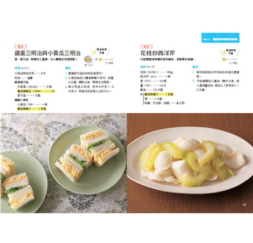 Part 3 介紹如何利用鹽漬檸檬來做出檸檬味十足的料理。開頭的4項絕品料理,是可直接感受鹽漬檸檬美味的入門必備菜餚。之後分門別類,分為5項因鹽漬檸檬而帶來不同風味的料理,每種料理都有詳盡的說明,即使是料理新手也能輕鬆駕馭。另附兩篇專欄分享如何利用鹽漬檸檬來處理食材及保存,以及鹽漬檸檬奶油作法。