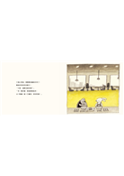 故事一開始,小兔子到烏龜國去旅行,文句放在白白的紙面,對面那一頁圖:熟透香蕉皮顏色的停機坪,上面有兔子剛走下的飛機、引道及行李車,還有遠處的兩架飛機;小兔子站在灰色的機場旅客出口處,一副不知所措的樣子。