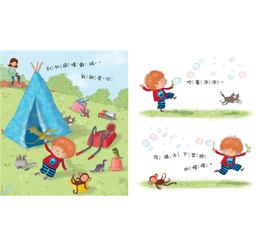 到外頭嬉戲時,我就愛你吹著泡泡,在陽光下奔跑的模樣。