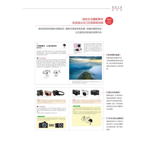 自拍、美食、天空、夕陽、夜景、風景……這些都是我們常見的生活拍攝主題,也是最常分享的生活照片類型,在《我的生活攝影美學》裡,作者群不只是告訴你這些主題怎麼拍,更帶出每個拍攝主題要注重的技法是什麼,例如要拍出蔚藍的天空,就要先了解色相法則;要留住運動者的動態感,就要掌握快門速度;要拍出皮膚清澈明亮的人物,就得了解曝光……等等,讓你從根本學習,運用起來更靈活!