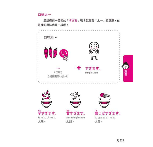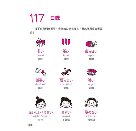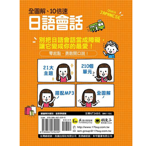 這本《全圖解、10倍速日語會話》共分為21大主題,其內容細分為210個有趣、實用又生活化的單元。並運用了圖文整合記憶法,以「圖像」+「文字...