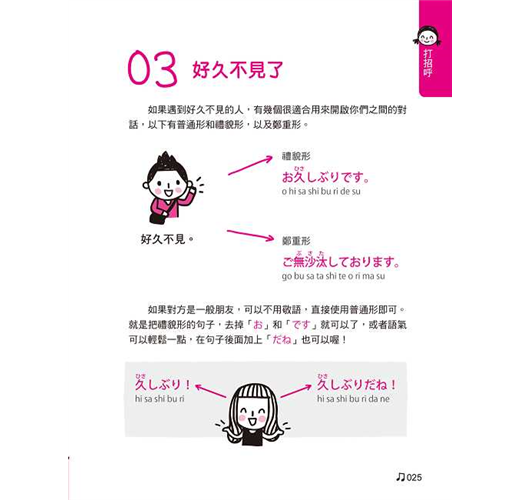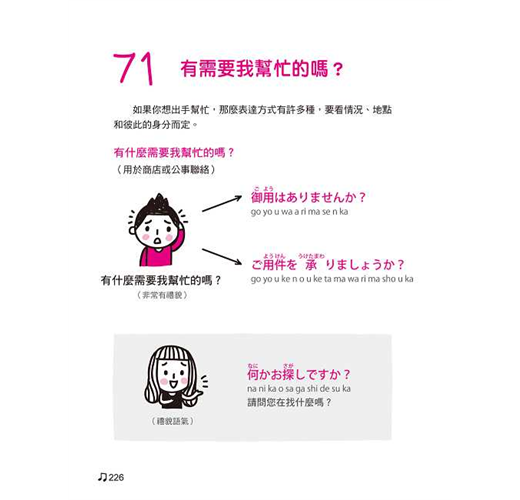 全書21大會話主題,延伸出日本人天天會遇到的210個話題,讀者可藉由豐富的內容,搭配「圖像」的配合,完整學習、鞏固日語會話的基礎,順利學好日文!