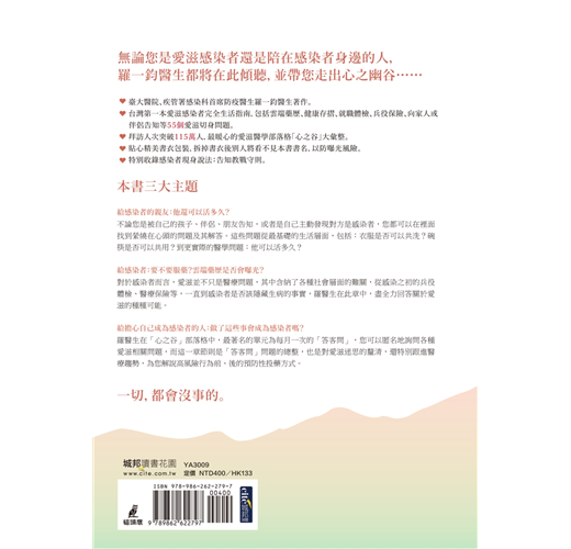這是一本給感染者看的書,從頭到尾大多以感染者為中心,感同身受的把多年來從感染者身上,從醫療服務上,從醫學研究上學到的點點滴滴,融會貫通後以溫暖的語氣,不耐煩的一再叮嚀。