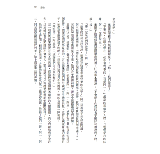 「因為我們目前為止只經歷了書裡面提到的那些事,」阿一說。「我們被女巫困在這裡,永遠出不去。」