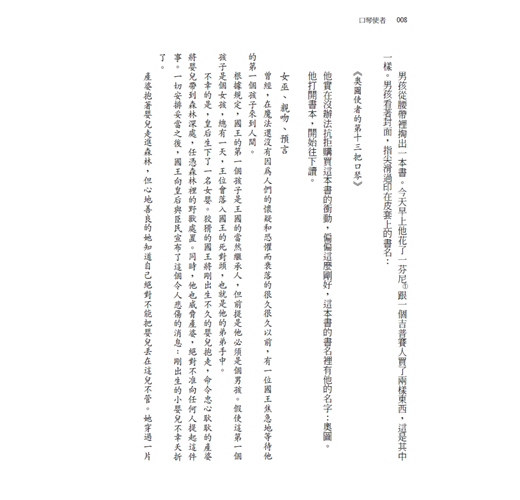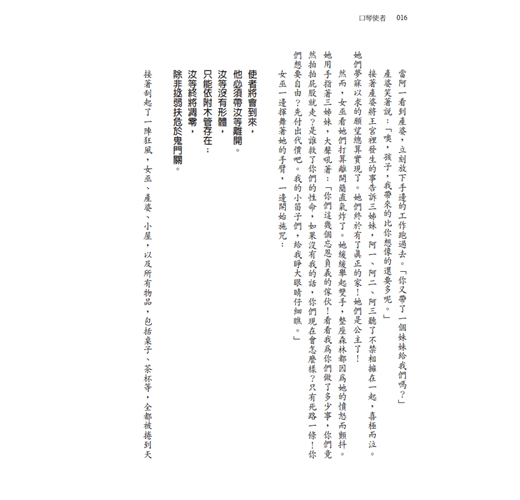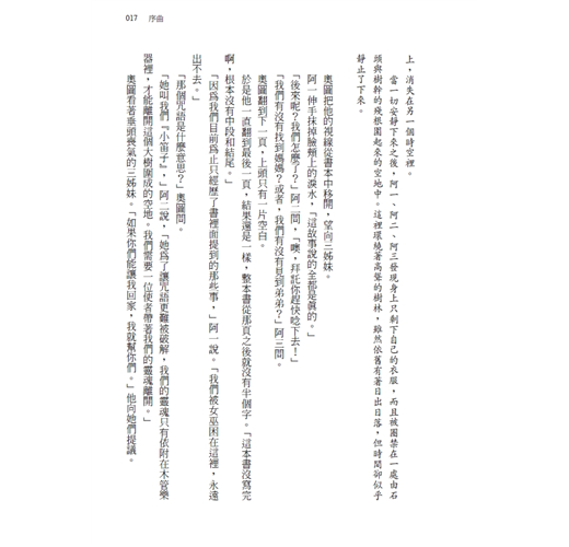 於是他一直翻到最後一頁,結果還是一樣,整本書從那頁之後就沒有半個字。「這本書沒寫完啊,根本沒有中段和結尾。」