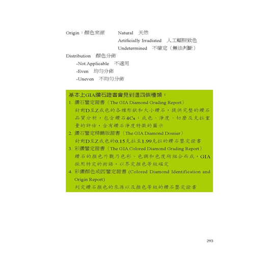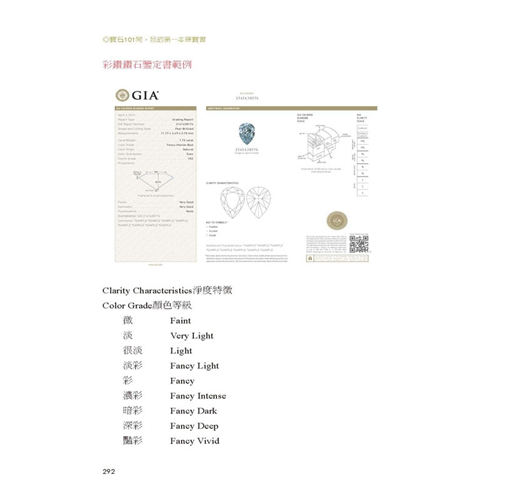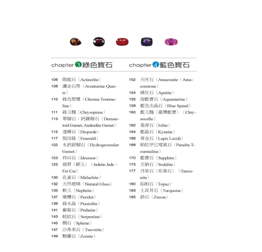 3.本書附錄:包括寶石鑑定書、鑽石分級報告書範例說明、寶石重量換算、鍊子長度對照表、戒指尺寸對照表、生日石、結婚紀念寶石、寶石特性檢索表等豐富補充知識。