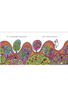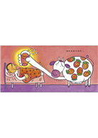 封面封底上,彎彎曲曲的山線、圓形的果樹和色彩繽紛的各類水果,讓人感覺好溫暖。書名頁裡那頭牛,帶著笑容由左往右走;翻頁後,他卻由右往左走,似乎是在水果森林裡來回往返,安心自在。接下來,四個跨頁連續展現主人摘水果,牛把水果吃下的瞬間。雖然是一樣的行動,圖像間的差異卻很有趣,尤其是牛的姿態。吃了香蕉的牛縱身往右上方奔躍;吃了木瓜之後,飛得更高了;吃西瓜就得老實著地了,直接啃進西瓜裡,好專注。到了晚上,吃了楊桃的牛,還能載著主人採集天上...