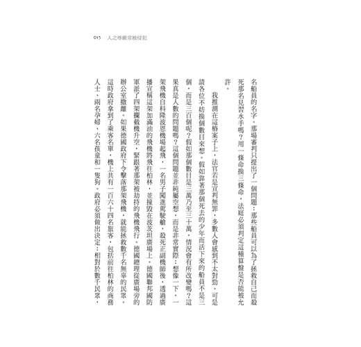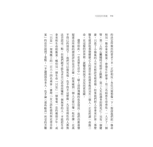 深諳提問藝術的律師,鼓勇為整個社會而問!用一條命換三條命,多數人或許會覺得不妥。然而,若用一條命換三百條命呢?政府或法律可以決定誰該活誰該死嗎?另外,是什麼使一個人成為罪犯?恐怖分子是否應享有人權?群體有智慧做出正確判斷嗎?我們還能信任媒體嗎?攝影已成了現代的恥辱柱?以幸福之名的法令真的幸福?