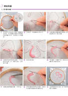 先將鐵絲縫置於底布上,繡製完成後再將花瓣裁剪下來。
