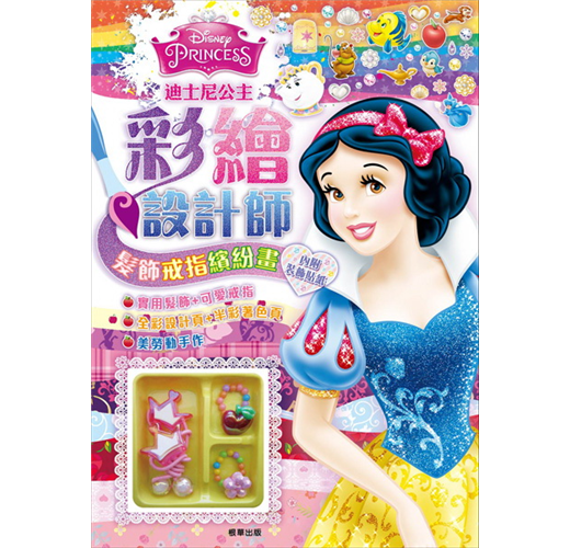 產品特色:搭配內附的裝飾貼紙,小朋友可以發揮自己的創意幫6位迪士尼公主們設計不同的衣服或者故事場景。