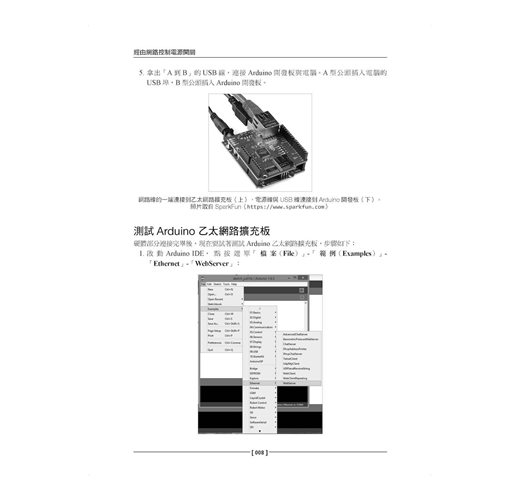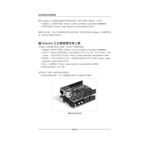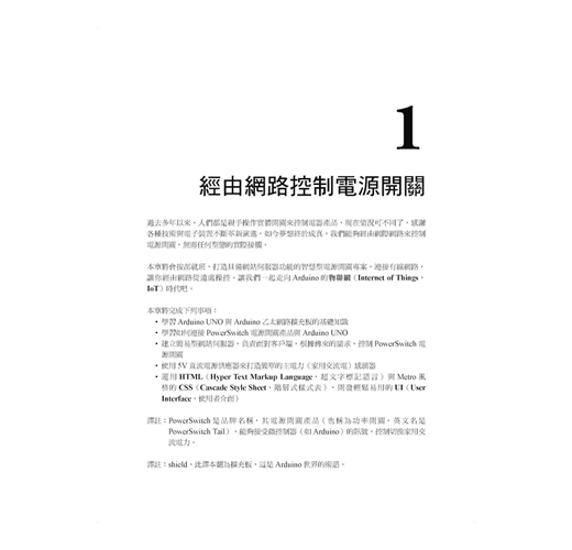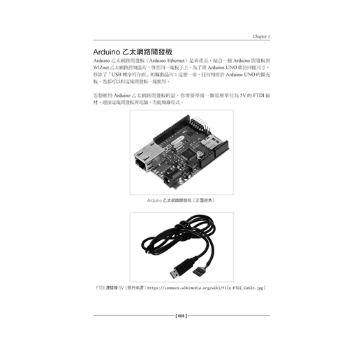 本書結合物聯網與雲端運算的概念,聚焦在如何將 Arduino 應用於網路相關的專案中。內容包含致動器控制、從各種感測器讀取資料、以及透過無線方式從 HTTP、TCP 等協定傳遞資料等等。